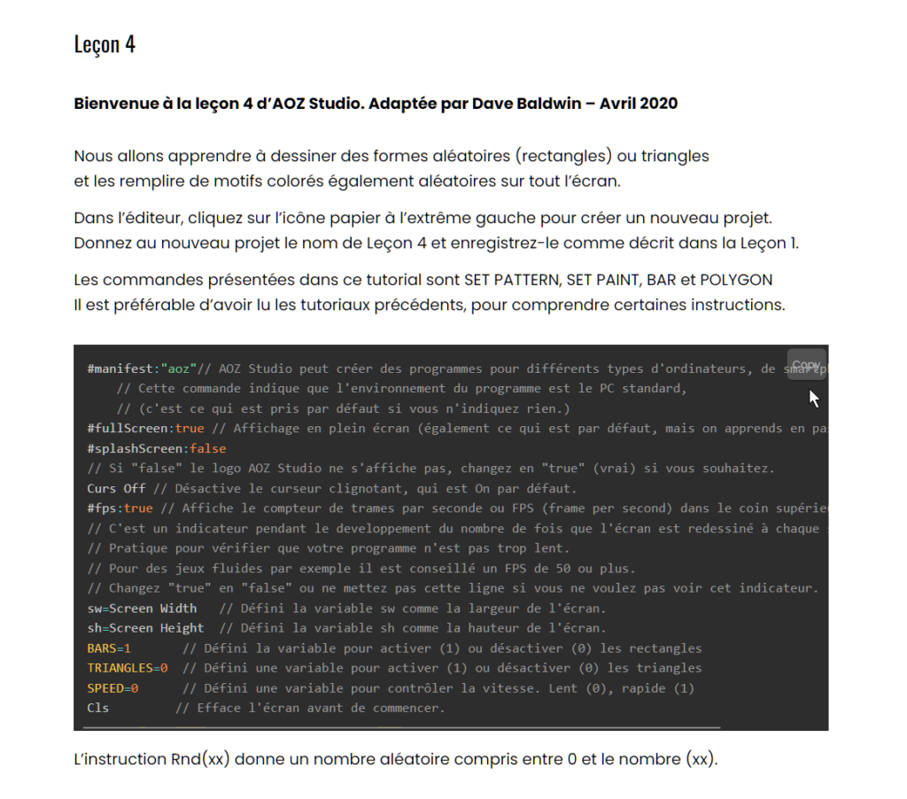 Apprends à utiliser AOZ Studio™ et les commandes Print, Locate, Input, Pen, End, For-Next et Wait