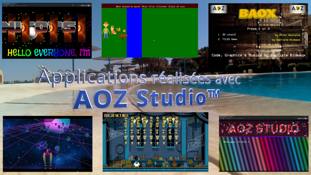 Clique sur une démo pour la lancer. Les démos ont été testées avec Firefox, Chrome et Safari et l’Ipad. Les applications qui chargent de la musique ne sont pas encore utilisables sur l’Iphone. Certaines démos ne sont jouables que sur PC car elles nécessitent un clavier. Veuillez recharger la page si la démo ne démarre pas.